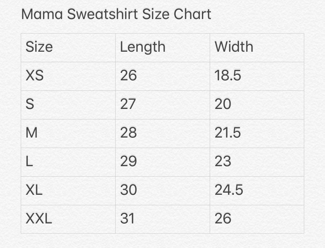These sweatshirts are so soft and cozy!! Great gift idea for any mama! The fit is unisex and slightly oversized. See the size chart in the listing photos for measurements. Measurements are in inches. Length is shoulder to the bottom of the hem and width is armpit to armpit.