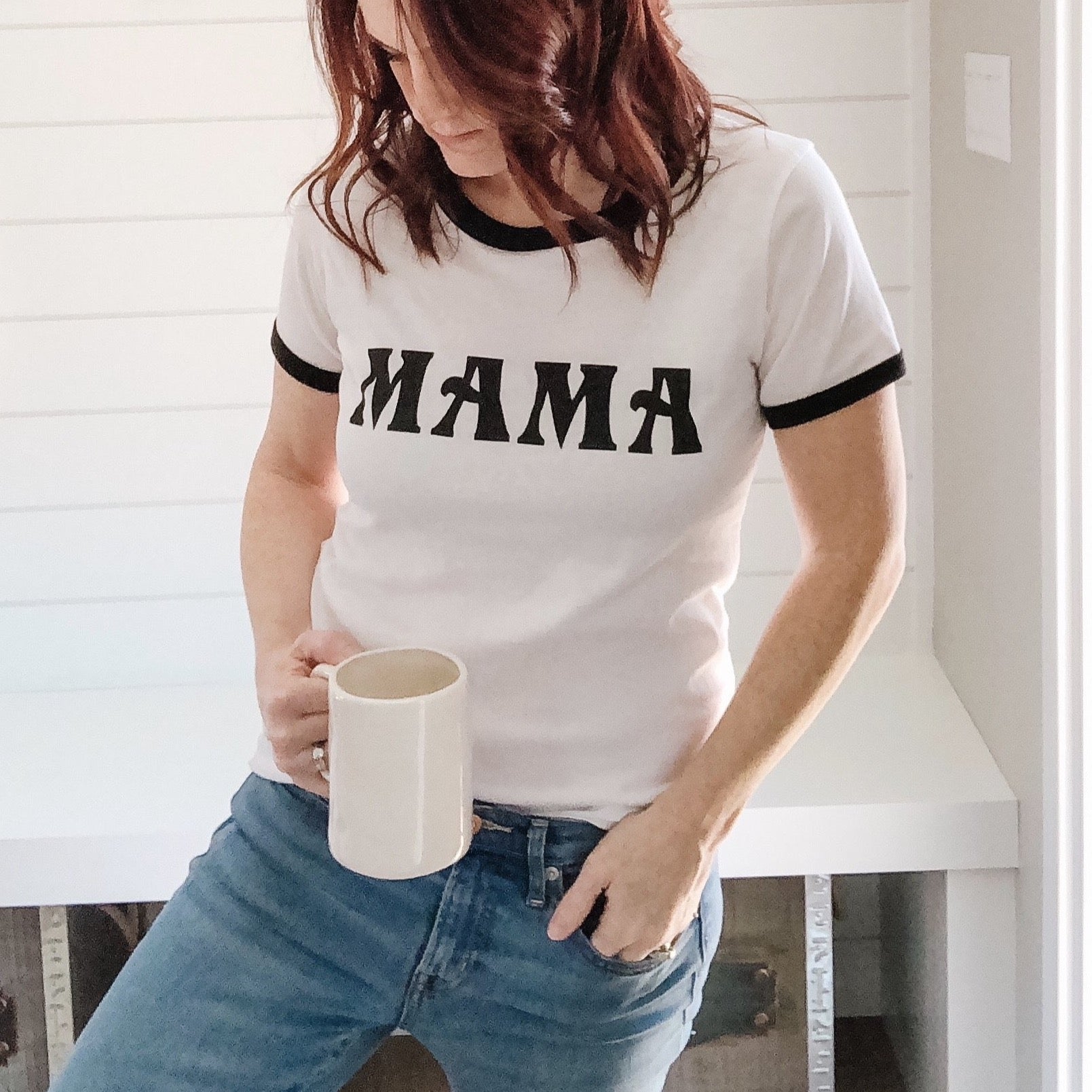 The perfect top for any stylish Mama! So cute and comfy, these retro ringer tees are available in two different fits so they are suitable for any style! First we have a slimmer ladies fit that is slightly tapered at the waist and figure flattering (shown in the first photo) and then we have a looser unisex style that fits much like many of our other tees and is perfect for knotting at the waist (shown in the second 2 photos). Please see the sizing charts in the listing photos to choose your size. Measurements are in inches from the shoulder to the bottom of the hem for length and from armpit to armpit for width.