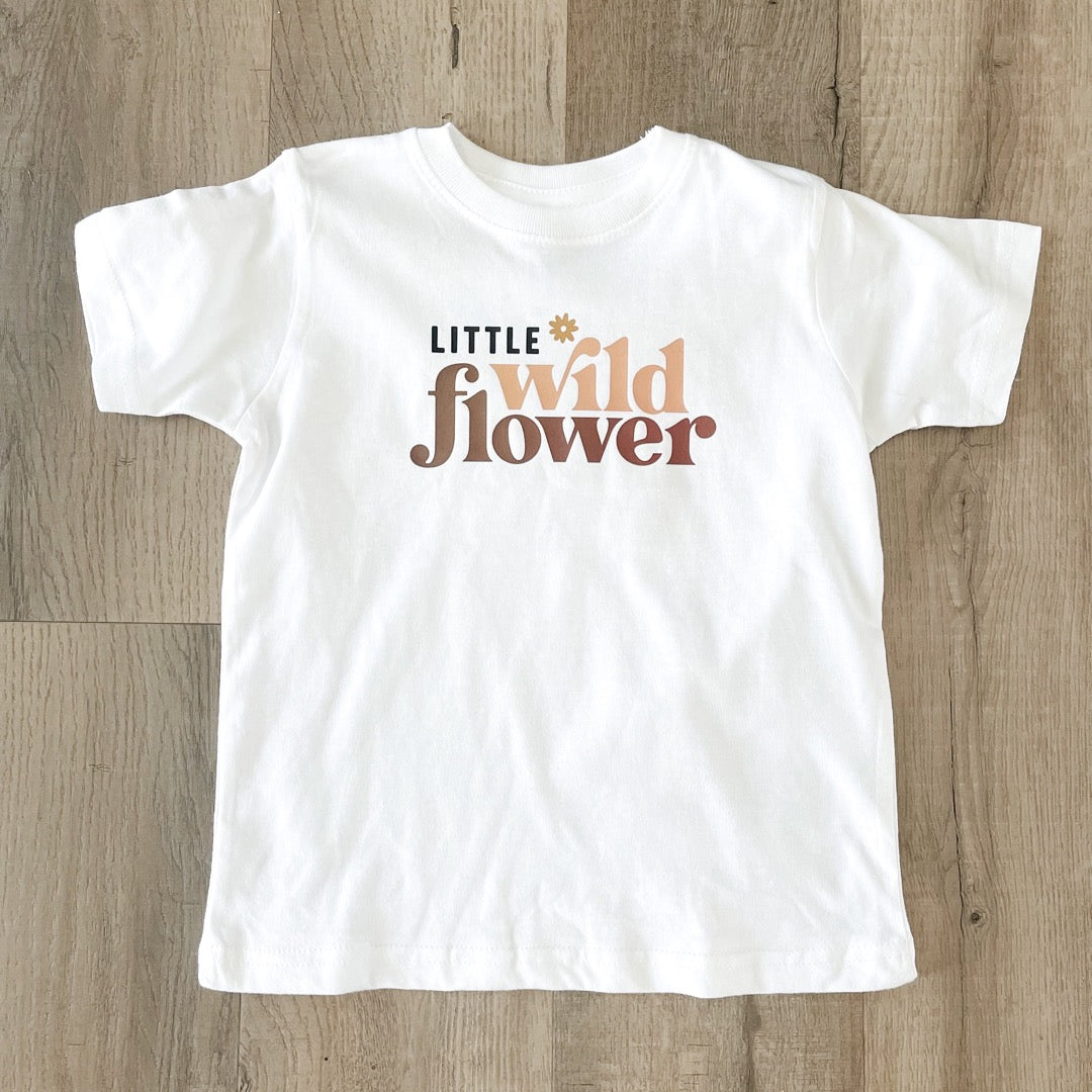 This tee is so sweet for your little wild flower. Neutral coloured design on a soft white 100% cotton tee.